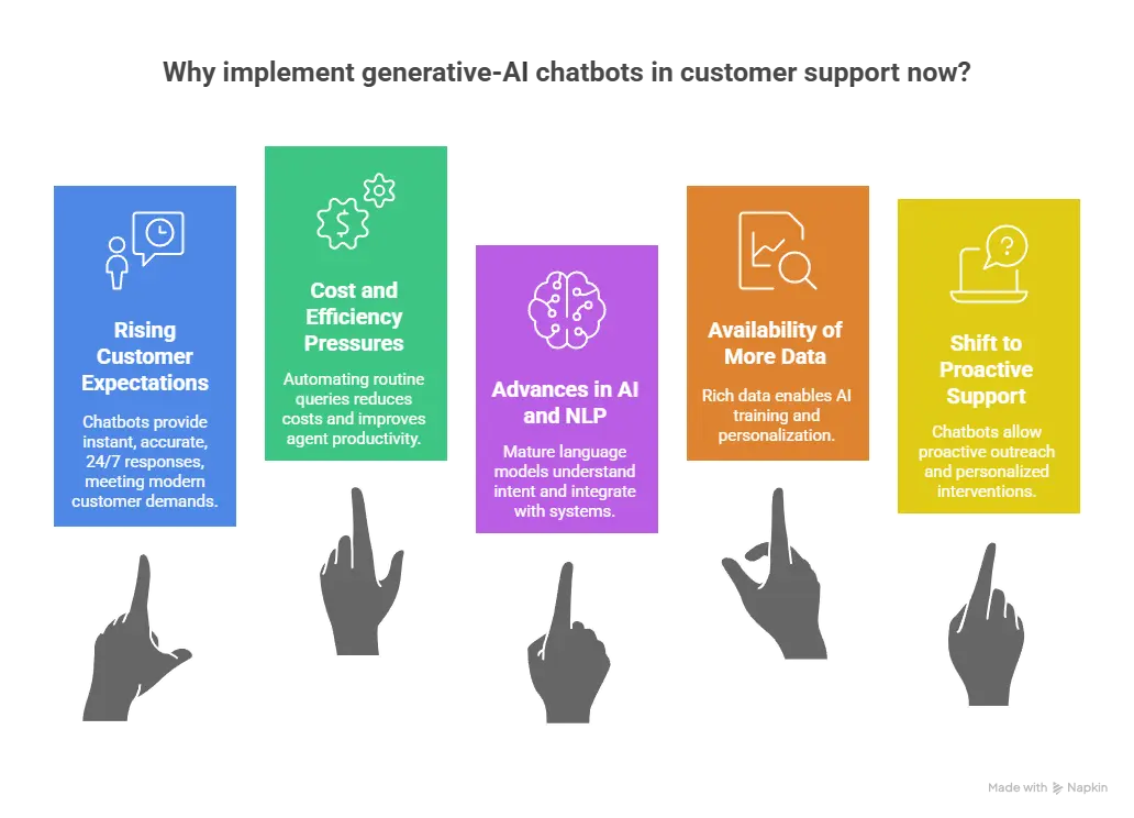 In short: it’s not simply that chatbots are getting smarter. It’s that business conditions demand smarter support, and generative AI is now viable enough to deliver.